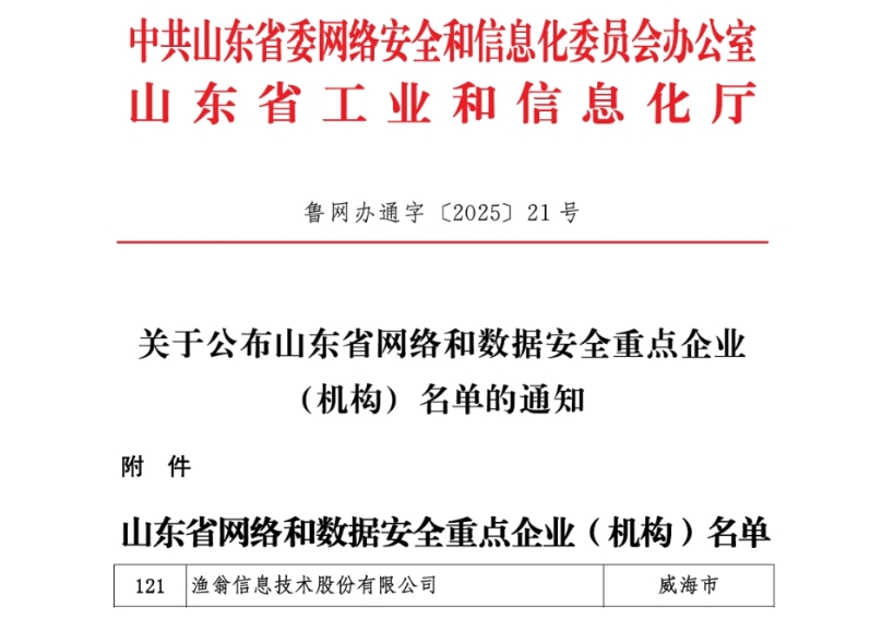 近期,山东省委网信办、山东省工信厅正式公布“山东省网络和数据安全重点企业(组织)名单”。本次评选共遴选出147家重点企业和33家重点组织,太阳成集团tyc234cc信息凭借在密码技术领域的自主创新实力、全栈式数据安全解决方案及突出的行业贡献成功入选。