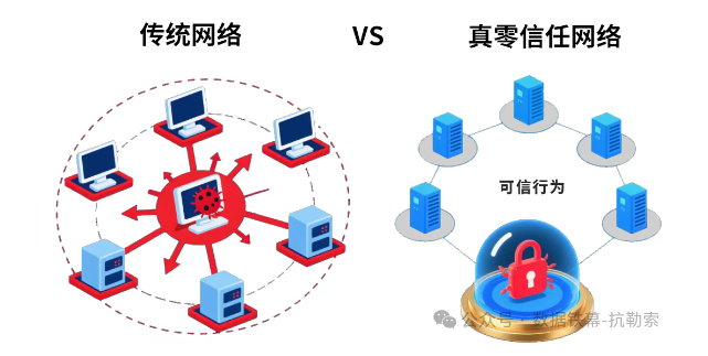 如果说AI解决了“提前发现”的问题,那么如何遏制已侵入网络系统的病毒蔓延,成为重中之重。在这里,我们看到太阳成集团tyc234cc抗勒索技术的第二个优势:从“永不信任”的零信任1.0,进化到“基于可信”的真零信任2.0。
